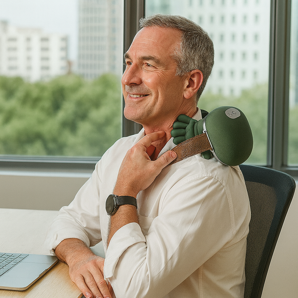 Experience deep-tissue neck and shoulder relief with our compact, smart massage device — engineered for professionals who need real recovery during real workdays.